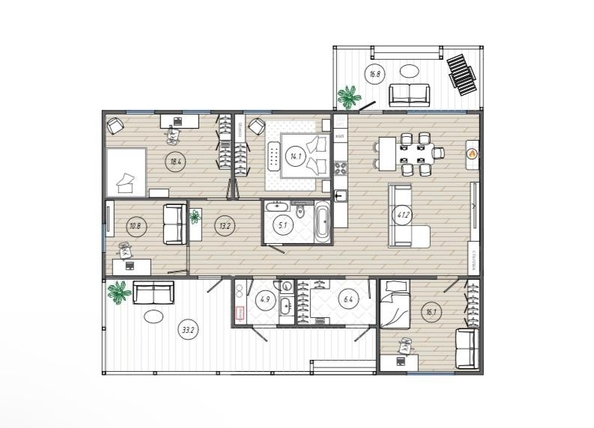 Наша технология строительства каркасная, а идея планировки домов в поселке "Акварели" заключается в принципе "растущего дома". Вы можете начать с небольшого домика и расширять его по мере необходимости, не затрагивая уже обустроенные жилые помещения.