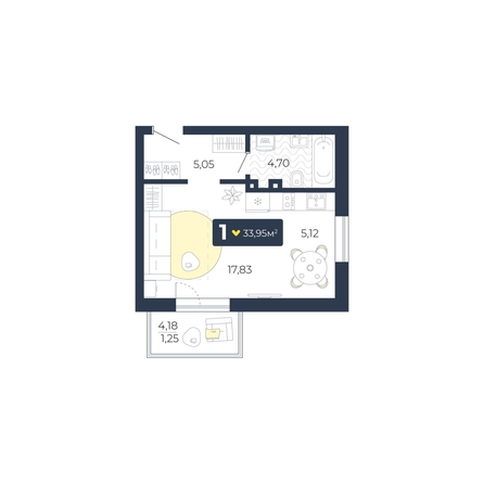 1-комнатная квартира, 33.87кв.м., 5 этаж