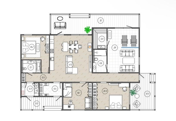 Наша технология строительства каркасная, а идея планировки домов в поселке "Акварели" заключается в принципе "растущего дома". Вы можете начать с небольшого домика и расширять его по мере необходимости, не затрагивая уже обустроенные жилые помещения.