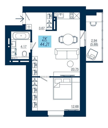 Компактная 2-комнатная. Прихожая 3,67 м2 с нишей для встроенного шкафа. Кухня-гостиная 21 м2 с французским окном! Кухонный фронт располагается в специальной нише – рядом с обеденной группой и выходом в лоджию. Отдельная спальня 12,7 м2. Планировка и дверные проемы спроектированы для эргономичной расстановки мягкой мебели, кровати и систем хранения. Номер объявления SD24-3962937.
