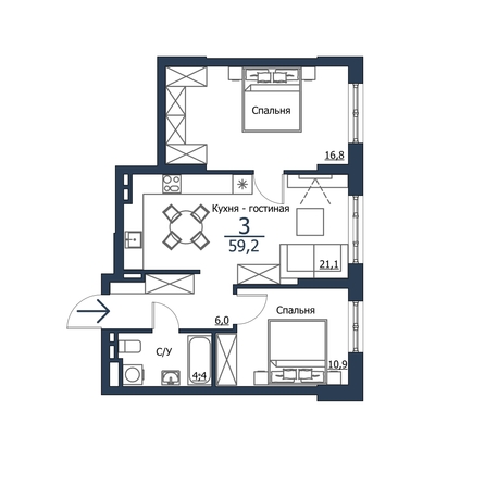 Современная классика в исполнении Арбан. Планировка, которую мы повторяем во всех последних проектах, настоящий хит продаж и искренняя любовь покупателей.