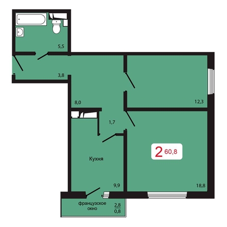 Общая площадь квартиры — 60.8 кв.м. Тип дома — панельный. Компания-застройщик — Культбытстрой.