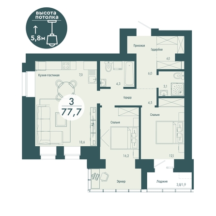 Продам 3-комнатную 77.7 кв.м. 17/17 этаж, кирпичный, Красноярск, Авиаторов ул, 32.