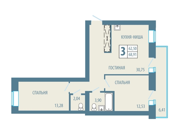 Общая площадь квартиры — 68.91 кв.м. Тип дома — кирпичный. Компания-застройщик — СЗ СК ЭкономЖилСтрой.