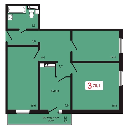 Общая площадь квартиры — 78.1 кв.м. Тип дома — панельный. Компания-застройщик — Культбытстрой.
