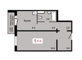 Общая площадь квартиры — 41,9 кв.м., кухня-8,3 кв.м.