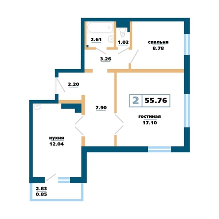 Общая площадь квартиры — 55.76 кв.м. Тип дома — панельный. Компания-застройщик — Сибиряк.