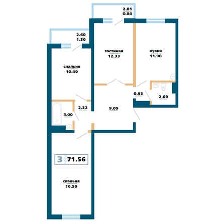 Общая площадь квартиры — 71.56 кв.м. Тип дома — панельный. Компания-застройщик — Сибиряк.