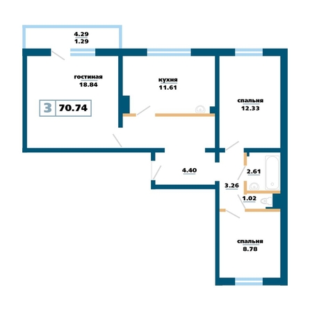 Общая площадь квартиры — 70.74 кв.м. Тип дома — панельный. Компания-застройщик — Сибиряк.