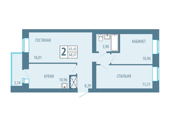 Общая площадь квартиры — 68.57 кв.м. Тип дома — кирпичный. Компания-застройщик — СЗ СК ЭкономЖилСтрой.