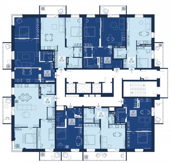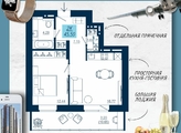 Квадратная прихожая : направо ванная, налево прачечная-лондри. Большая кухня-гостиная с французским окном в пол и выходом на большой витражный балкон. Отдельная спальня спроектирована под удобную расстановку мебели. Квартира будет сдаваться в предчистовой отделке. Такой тип отделки еще называют White Boх, потому что стены и потолки в квартире белые, покрытые шпатлевкой. На полу ровная чистовая стяжка. Сделана электрика: есть электрощиток в квартире, выводы под розетки, выключатели и светильники. Разведены трубы в ванной и на кухне.