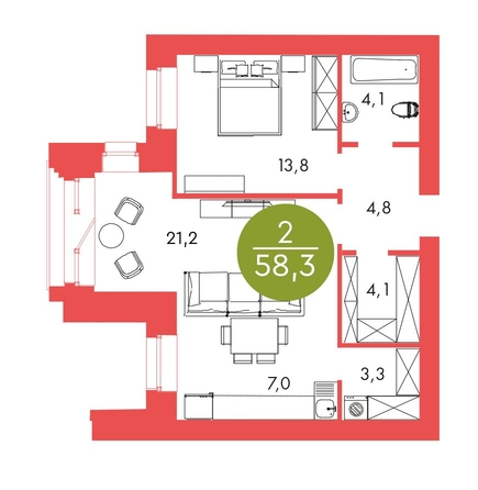 Особое место в квартире - витражное окно в пол и французский балкон. Это небольшое, но уютное пространство квартиры может стать ее сердцем! Воплотите свои мечты о занятиях йогой у распахнутого окна, кофейном уголке, рабочем пространстве, или просто поставьте сюда кресло, чтобы уединиться с книгой.