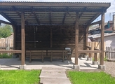 Просторная беседка со столом – для трапез на свежем воздухе.