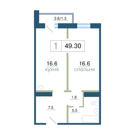 Продам 1-комнатную 49.3 кв.м. 9/17 этаж, панельный, Красноярск, Дубровинского ул, 110г.