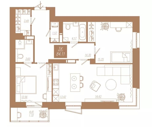 Умопомрачительная планировка 3-комнатной квартиры 84,11 м2 с 2-мя санузлами и видом на Енисей. Гареробная 3,49 м2 на входе. Постирочная комната 1,6 м2 с водопроводом и электричеством позволит разместить стиральную машину, бытовую химию и домашние принадлежности. Мастер-спальня 12,56 м2 с продуманной планировкой для хранения и размещения туалетного столика имеет собственную душевую и большое окно с выходом на балкон. Детская комната 15,25 м2 с простенками для встроенных шкафов удалена от родительской спальни – что дает еще больше комфорта и приватности. Роскошная кухня-гостиная 28 м2, где всегда будет много света: здесь есть угловое пейзажное окно и французский балкончик, который будет утопать в цветах. Такое пространство подойдёт для события любого формата: встречи с семьей и особые даты, светские вечера или воскресные бранчи. Номер объявления SD24-3964710.