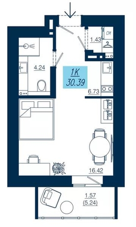 Нестандартное и функциональное прочтение студии – зона готовки вынесена в отдельную нишу. Благодаря этому, в большой комнате появилась обеденная зона, рабочий стол и зона спальни. Плюс отдельные ванная и прачечная. Для студии это высший пилотаж! Номер объявления SD24-3964863.