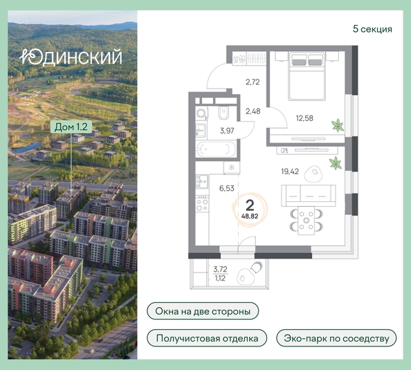 2-комнатная квартира, 48.82кв.м., 9 этаж