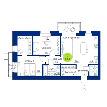 Эта просторная 3-комнатная квартира – идеальное решение для тех, кто работает дома. Мастер-спальня с собственным французским балконом также оснащена дополнительным пространством – рабочим кабинетом, который можно оборудовать и как роскошную гардеробную. Окна выходят на лес, а значит, вы сможете отдыхать и работать с видом на многолетние деревья, словно живете в загородном доме. Украшение просторной и светлой кухни-гостиной – витражный эркер с видом на уютный двор. В квартире предусмотрено два санузла и вместительная гардеробная в прихожей.