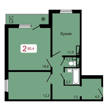 Продается 2-комнатная квартира в новостройке КБС. Классика, дом 1 по адресу Красноярский край, Красноярск, Октябрьский район от застройщика.