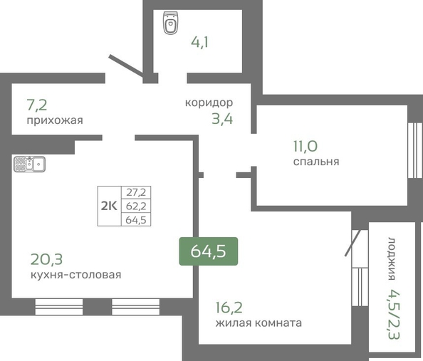 Фактически это квартира формата ЕВРО трешка. Две спальни и одна большая гостиная 20кв.м.