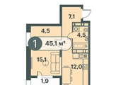 Общая площадь квартиры — 45.1 кв.м. Тип дома — монолит-кирпич. Компания-застройщик — Сиблидер.