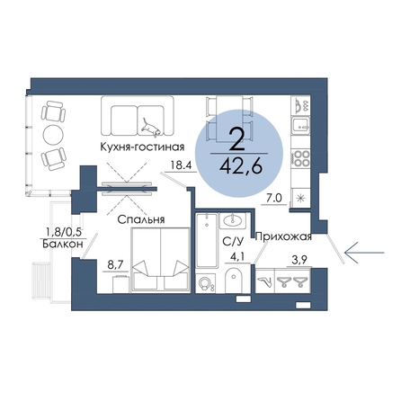 Сложно поверить, что на площади 42 м² можно уместить столько функциональных зон!