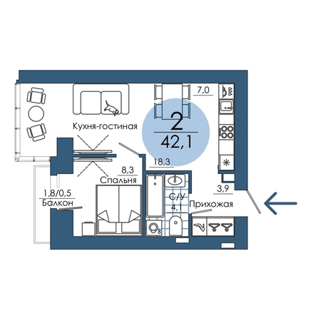 Сложно поверить, что на площади 42 м² можно уместить столько функциональных зон!