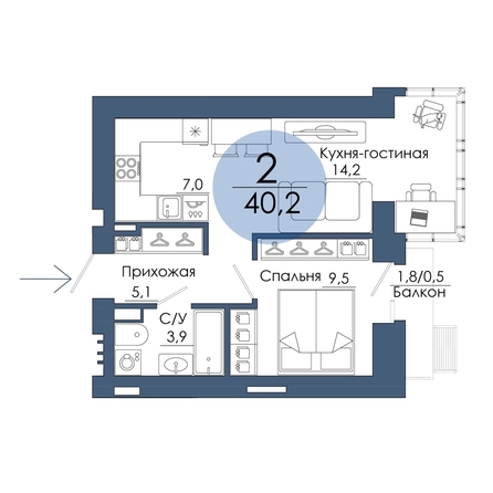 Двухкомнатная smart-планировка — абсолютный хит наших проектов.