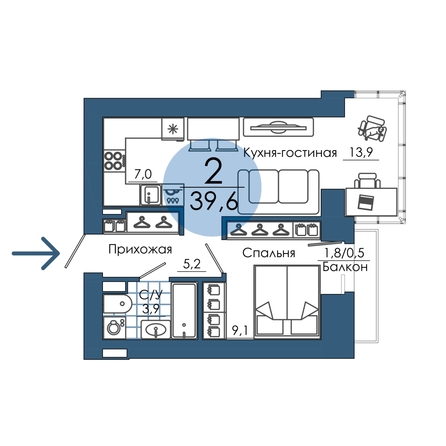 Двухкомнатная smart-планировка — абсолютный хит наших проектов.