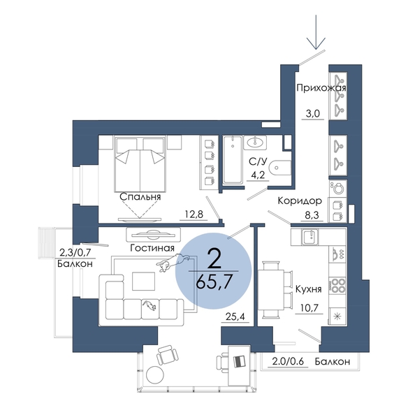 Классическая планировка с отдельной 11-метровой кухней. Уютная спальня с местом для шкафа. Окна гостиной выходят на 2 стороны, наполняя пространство светом. В просторной прихожей расположены ниши для встроенных шкафов и лондри.