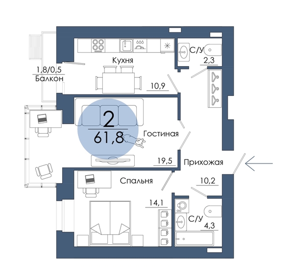 Квартира отвечает всем потребностям жильцов, которые предпочитают классические и проверенные решения: в ней изолированная кухня с выходом на французский балкон, гостиная с витражным эркером и спальня. Для дополнительного комфорта предусмотрен второй санузел и просторная прихожая.