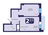 Общая площадь квартиры — 49,87 м2., жилая 15,1 кв.м.,кухня 19,12кв.м.