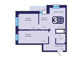 Общая площадь квартиры — 61,23 м2., жилая 26,91 кв.м.,кухня 19,16кв.м.