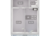 Общая площадь квартиры — 60.7 кв.м. Компания-застройщик — ДСК.