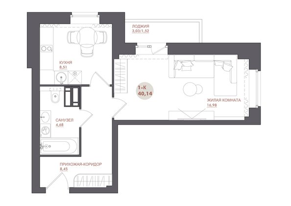 Общая площадь квартиры — 40.14 кв.м. Тип дома — монолит-кирпич. Компания-застройщик — ДСК.