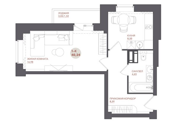 Общая площадь квартиры — 40.24 кв.м. Тип дома — монолит-кирпич. Компания-застройщик — ДСК.