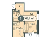 Общая площадь квартиры — 45.1 кв.м. Тип дома — монолит-кирпич. Компания-застройщик — Сиблидер.