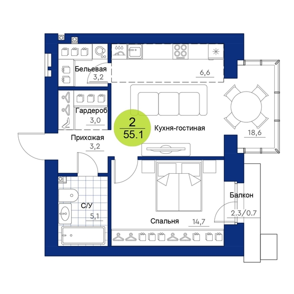 Эта 2-комнатная квартира с потолками 3 метра — пример уюта и практичности. Подойдет для комфортного проживания одного человека или пары.