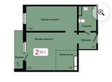 Общая площадь — 52.3 кв.м., кухня-гостиная-25 кв.м., жилая-16,6 кв.м.