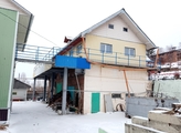--Здание справа от вьезда(кирпич-брус)-2этажа--260кв.м +цоколь.
