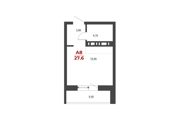 Общая площадь квартиры — 27.3 кв.м. Тип дома — монолит-кирпич. Компания-застройщик — ГСК Спецстрой .