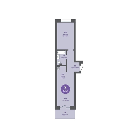 2-комнатная квартира на 1 этаже в 16-этажной секции прогресс-кварталов «Перемены».