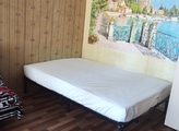 В квартире новая двуспальная кровать, новый шкаф, новый холодильник, новая стиральная машина, новая входная дверь.