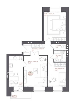 - Разные площади квартир - от 31 до 78 м²