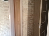 - Жилое помещение =10,5м2 (2,42*4,34) с одним глухим окном и балконной дверью и на боковом фасаде окно со створкой глухой и створкой открывающиеся. Балконное пространство остеклено и обшито пластиковыми панелями, но не утеплено.