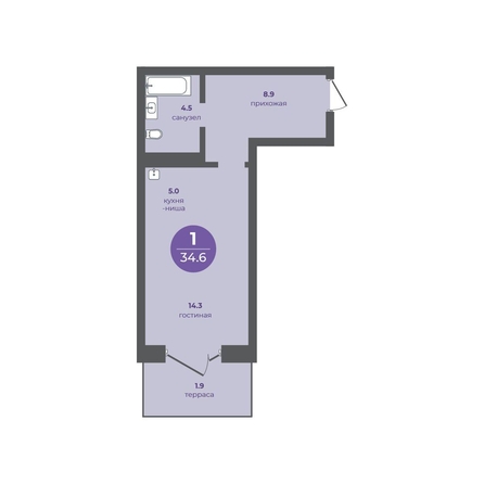 1-комнатная квартира на 1 этаже в 11-этажной секции прогресс-кварталов «Перемены».