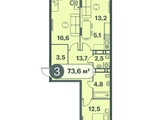 Общая площадь квартиры — 73.6 кв.м. Тип дома — монолит-кирпич. Компания-застройщик — Сиблидер.