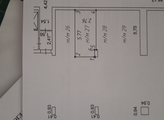 Площадь 15,7 м2 (длина 5,77 м, ширина 2,76 м, 2,56 м - возле колонны), на парковку два въезда, расположение см. на фото.