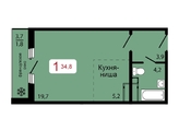 Общая площадь квартиры — 34,8 кв.м. Отделка чистовая от застройщика.