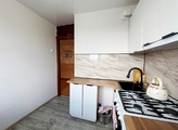 Ухоженная, тёплая квартира, не угловая в отличном состоянии. Комнаты смежные, общая площадь 45,6 кв.м. (без учёта застеклённого с внутренней отделкой балкона). На окнах установлены стеклопакеты, отделка стен – обои, натяжные потолки, напольное покрытие – линолеум, поменяны радиаторы. Совмещённый санузел, отделка выполнена с использованием керамической плитки и сантехнического оборудования, установлены счётчики. В комнате достаточно габаритный встроенный шкаф «Стэнли», стенка, на кухне качественный гарнитур со встроенной техникой, современная газовая плита, барные стулья.